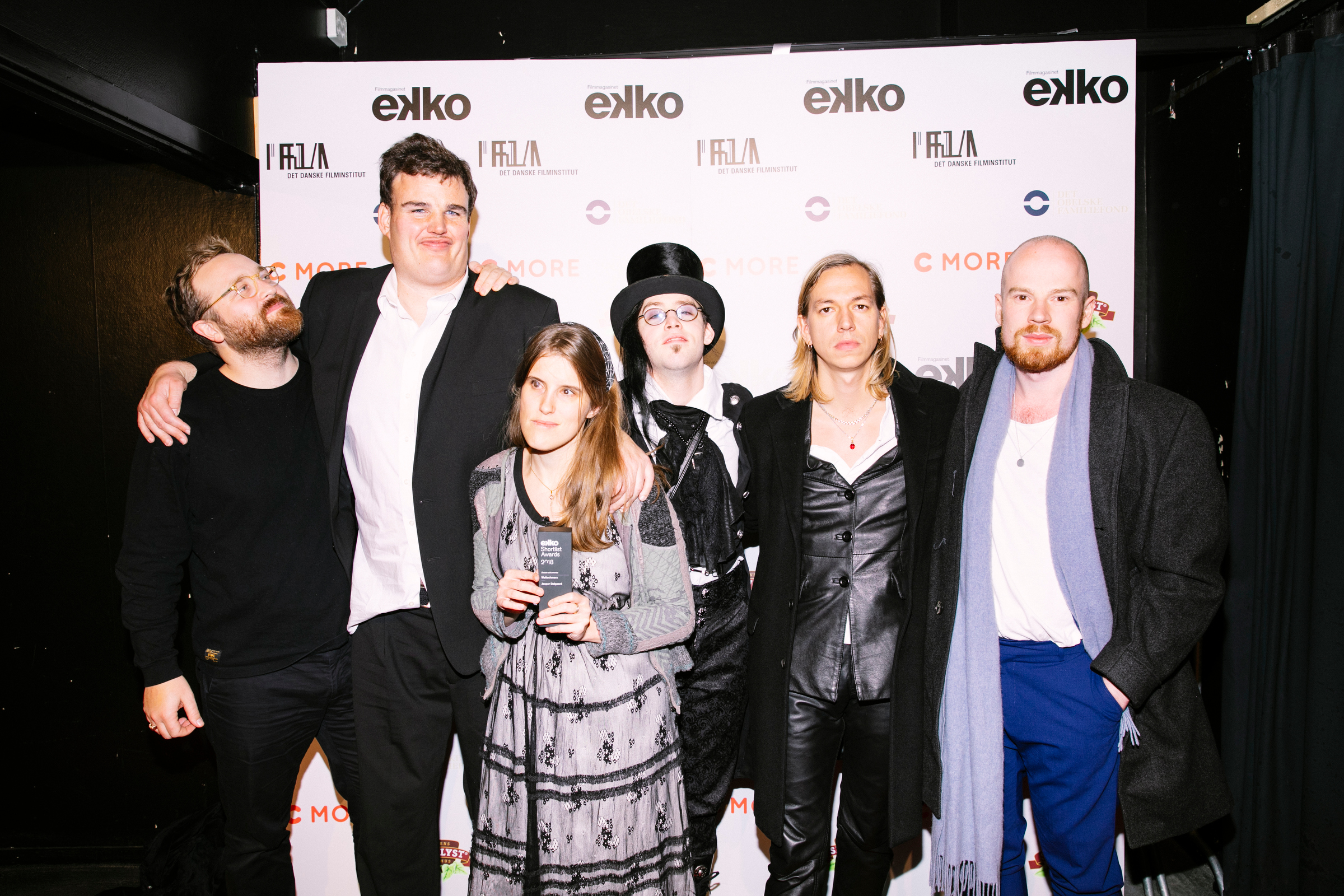 Tre priser vandt også folkene fra Weltschmerz, hvis Valdemar Cold Winge Leisner (yderst tv.) tog prisen for bedste fotografering. Instruktør Jesper Dalgaard (nummer to fra højre) og komponist Søren Stenager (yderst th.) modtog henholdsvis statuetter for bedste dokumentar og originale musik.