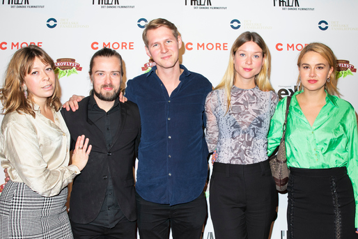 Aftenens store vinder af hovedprisen blev holdet bag Forever Now, der som nummer to fra venstre tæller tonemester Christian Munk Scheuer, instruktør Kristian Håskjold, producer Siri Bøge Dynesen og skuespiller Frederikke Dahl Hansen. Længst til venstre står Håskjolds kæreste Eva Kristine Lendorph Christensen, der er scenograf.