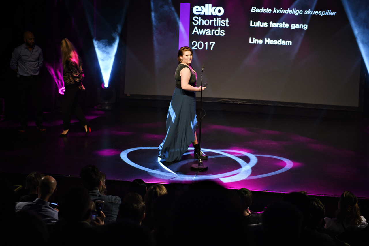 Bedste kvindelige skuespiller går til unge Line Hesdam for rollen som den mobbede titelkarakter i Lulus første gang. Det er Hesdams første pris, men hun husker at takke kollegerne på filmen samt mor og far.