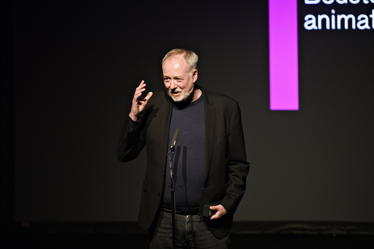 Aftenens største bifald tilfalder den elskede tv-vært Jakob Stegelmann. Han overrækker prisen for bedste animation til zombie-filmen Less Than Human, der er undfanget på The Animation Workshop.