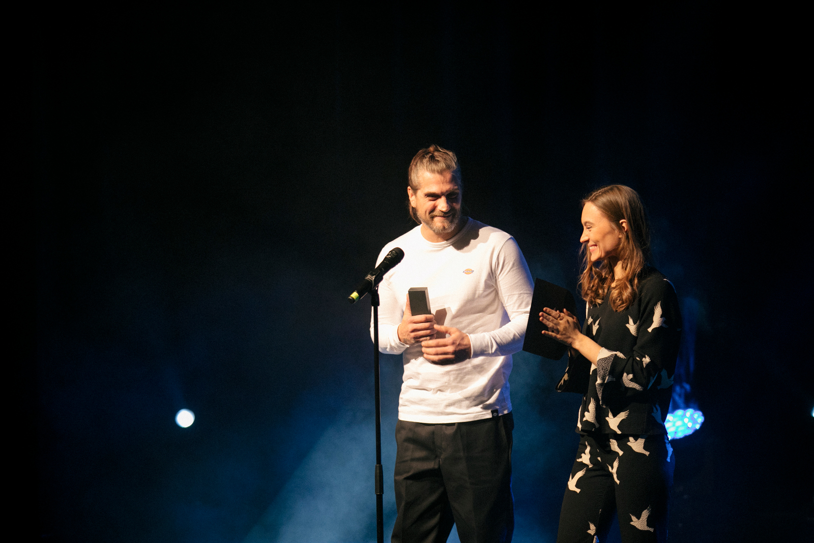 Jurymedlem og instruktør Michael Noer holder en begrundelsestale, der hylder Kristian Håskjolds måde at bruge det korte format til at fortælle historier på.
