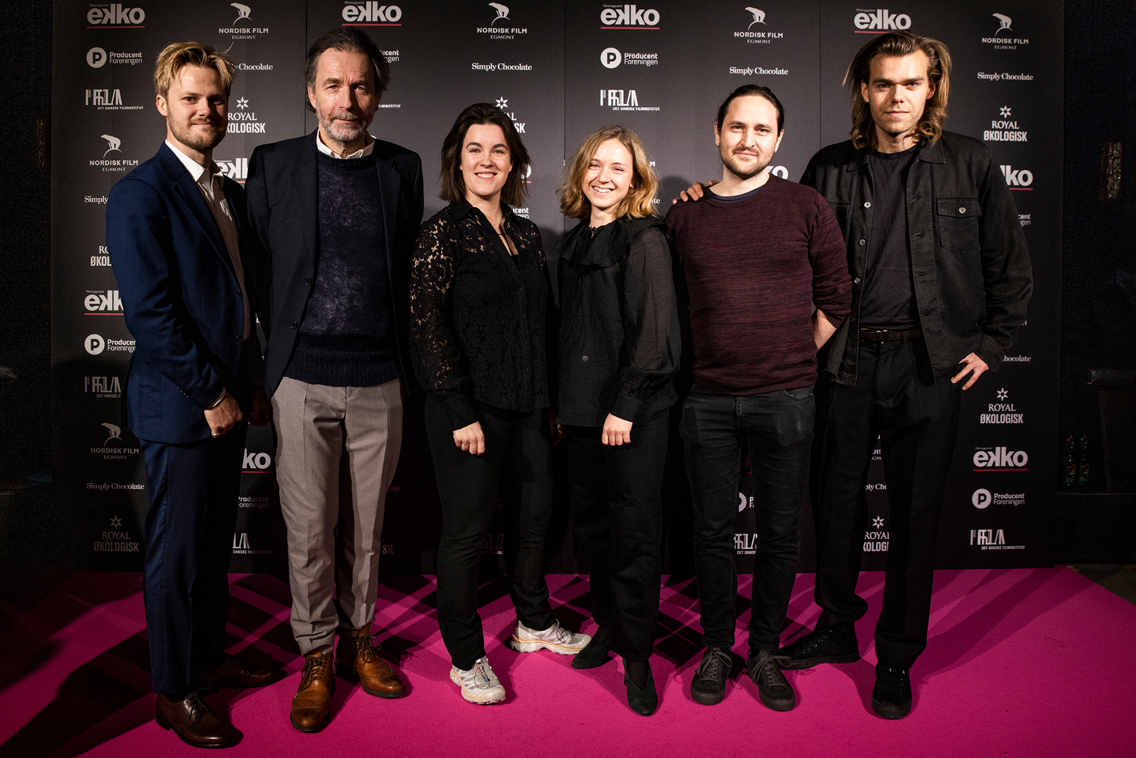 Filmskaberne bag den allegoriske Hullet er i spil til hele fire priser ved Ekko Shortlist Awards. Fra venstre er det tonemester Peter Storm Wich, skuespiller Anders Mossling, producer Jenny Mattesen, scenograf Emilie Vigh, manuskriptforfatter Frederik B. Ringtved og klipper Kasper Schultz Simonsen.