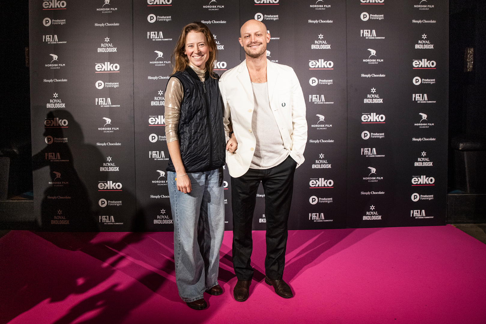 Filippa Suenson og hendes mand, skuespilleren Janus Elsig, sender store smil ud til kameraet. Suenson er nomineret for sin skuespilpræstation som psykisk udfordret mor i Uden at blinke.