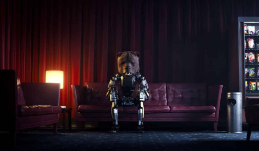 I den syrede kortfilm Bye Bear klæder robotter sig ud som dyr og drømmer om at være af kød og blod.