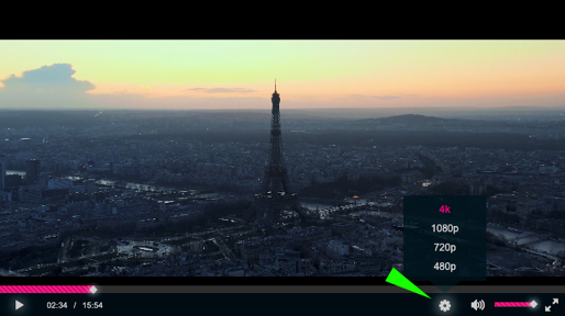 Sidder man på et sløvt netværk, der har svært ved at trække en kvalitet i 4k, kan man skrue ned til 1080p, der også er flot HD-kvalitet. Det foregår på tandhjulet nederst til højre i afspilleren (se billede herunder).