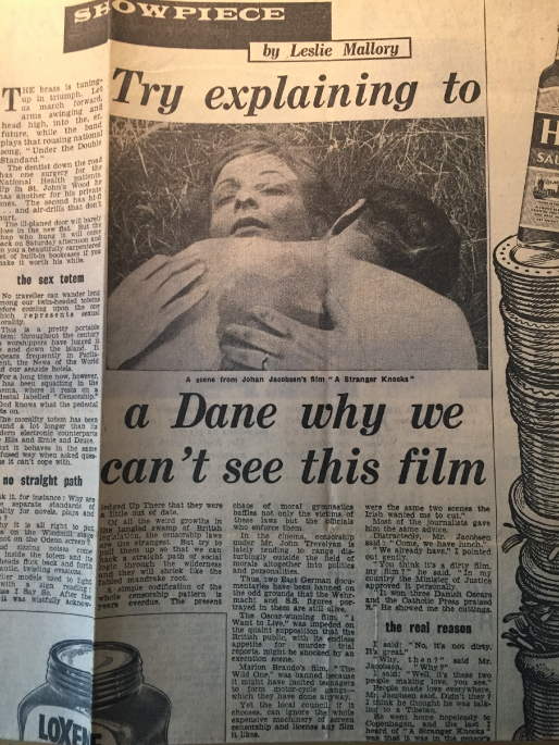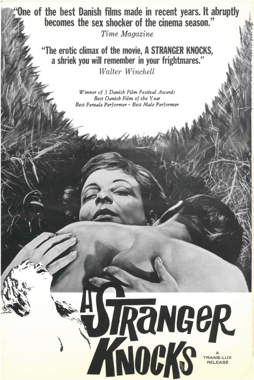 Our fight for A STRANGER KNOCKS has been aided by important factors: Firstly, we have had fine critics reviews and secondly, excellent boxoffice at the few places we have played. Both Washington and San Francisco house records were broken. Distinguished notices and excellent business means people of discrimination had read, seen and approved A STRANGER KNOCKS. The end of the road has still to be reached; but fight we will. Trans-Lux is not presenting a murky, pornographic film (…) we are presenting a film of distinction.