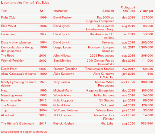 Og der sker ingenting, før rettighedshaveren gør YouTube opmærksom på, at han eller hun ejer filmen. På den måde bliver platformen et slaraffenland for filmtyve.