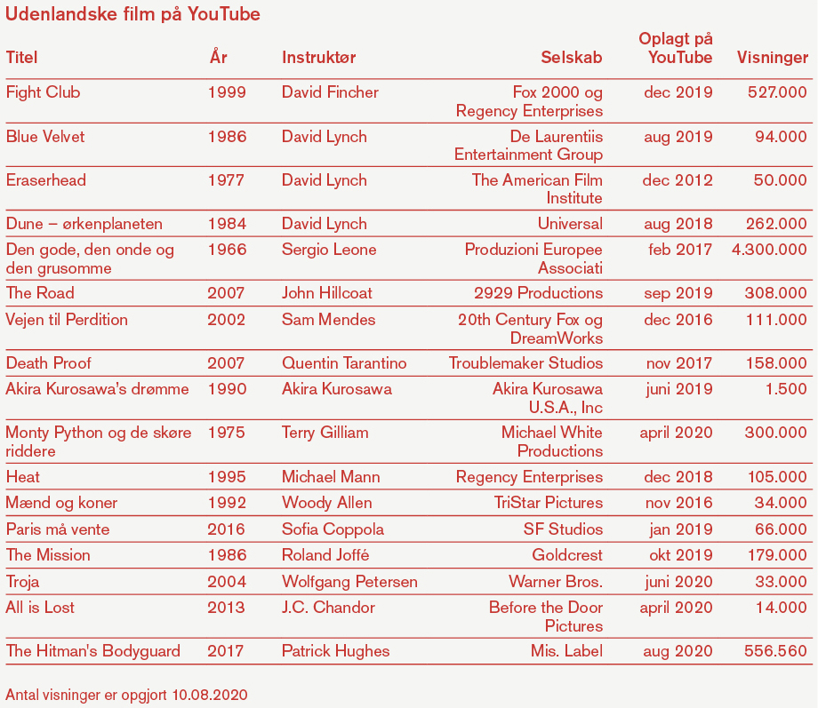 – Vi har været i kontakt med blandt andre Nordisk Film og Zentropa, som bekræfter, at Under sandet, 9. april og The Salvation ligger ulovligt på YouTube!