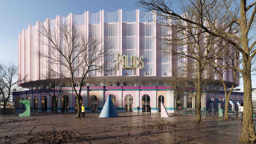 Meningen med topbygningen er et organisk formet og let svævende, retningsløst lyserødt ”lærred”. Det er inspireret af Palads’ historie, som vokser ud af stueetagen og skal lede tankerne hen på fest og farver.