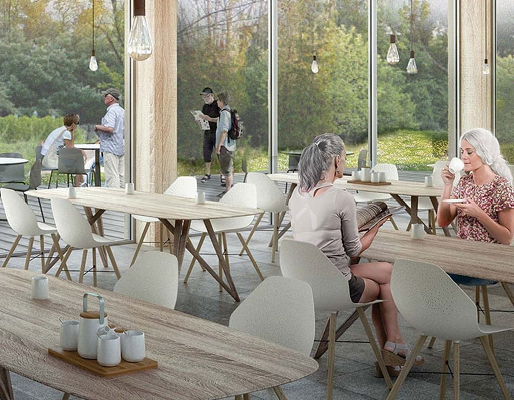 Ifølge hjemmesiden vil boligerne på op til 15.000 m2 blive indrettet med mulighed for at mødes til ”spisning, hobbyer og filmaftener”. Det illustreres med billedet af mennesker i et stort, lyst fælleslokale med træborde og en glasfacade, der glider over i en veranda og grønne omgivelser i baggrunden.