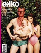 I det nye nummer af Ekko, der kommer på gaden, pryder Frank Hvam forsiden med et højfjeldssol-forbrændt fjæs og en meget hvid krop sammen med Mia Lyhne og en noget misfornøjet baby.