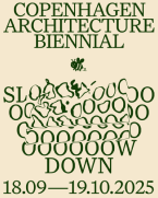 Københavns første arkitekturbiennale varer fra 18. september til 19. oktober. Temaet er ”Slow Down”, som henviser til en arkitektonisk tilgang, der sænker farten og betoner kvaliteterne i det eksisterende.