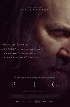 I Pig har Rob isoleret sig, fordi hans kone døde. Siden har han været i sorg og holdt sig alene ude i skoven med sin trøffelgris. Da den forsvinder, tager han ind til storbyen Portland.