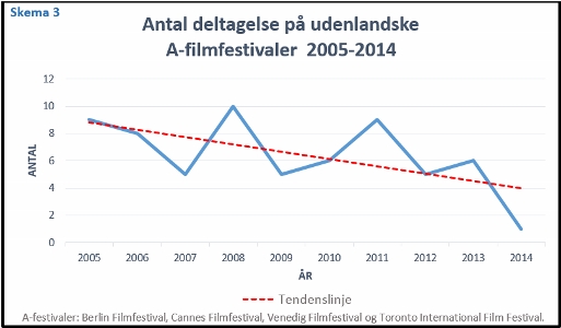 2005-film kom på ni A-filmfestivaler, hvilket faldt til seks for 2013-spillefilm. For film fra 2014 er det kun blevet til en enkelt A-filmfestival.