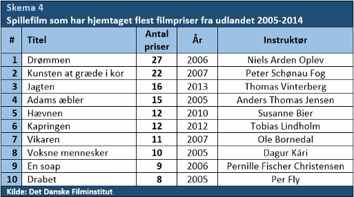 Danske spillefilm fra 2005 vandt 64 priser ved filmfestivaler, mens tallet for spillefilm fra 2014 er helt nede på otte priser.