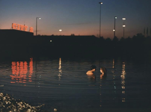 Saleh Malek og Sofie Gråbøls unge elskende bader om natten i skæret fra City 2’s neonskilt i en romantisk scene, der fremhæver længsel efter nærvær i den trøstesløse forstad.