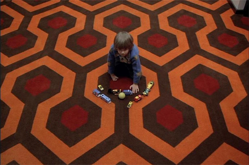 Nogle filmfans mener, at The Overlook Hotel er en slags levende organisme, der langsomt fortærer sine beboere, mens det driver dem vanvittige. Læg mærke til, hvordan lyskontakter, billeder og stole forsvinder og skifter pladser fra scene til scene, fjernsynet kører uden ledning – og især hvordan de iøjefaldende tæppemønstre ændrer sig. Se for eksempel scenen, hvor Danny leger med sine biler i en af hotellets gange, da en bold triller hen til ham. Tæppet under drengen ændrer sig fra det ene klip til det næste og lukker ham billedligt talt inde i sit mønster. Andre mønstre i hotellet synes at have nærmest pornografiske undertoner, som gulvtæppet i værelse 237. Continuity-fejl og tilfældigheder – eller subtil metaforik? Døm selv!