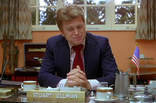Nogle mener, at The Shining viser Stanley Kubricks mistillid til autoriteter og i særdeleshed den amerikanske regering. Hotelmanager Ullman har således fået en JFK-lignende toupé på i Jacks interviewscene på kontoret, og hele Overlook-hotellet med alle dets uhyggelige beboere og blodige historie repræsenterer Det Hvide Hus.