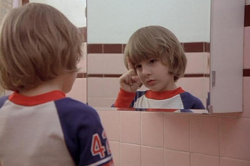 Stanley Kubrick gør generøs brug af spejle i The Shining – Jack taler for eksempel konsekvent til spøgelserne igennem spejle, hans egen onde side vises i spejle, ligesom også ondskaben i værelse 237 dukker op i et spejlbillede (den rådnende kvinde). Spejlene viser en parallel mareridtsverden, der måske også er en del af den virkelige, hvis karaktererne lader sig påvirke for meget. I starten af filmen beroliger Hallorann Danny med, at de overnaturlige kræfter på Overlook-hotellet er som billederne i en bog – de kan ikke gøre en noget. Danny reagerer derefter ved at holde sig for øjnene, når han ser sine forfærdelige syner, men hans far interagerer med “spøgelserne” – og i sidste ende bliver de hans meget virkelige undergang.