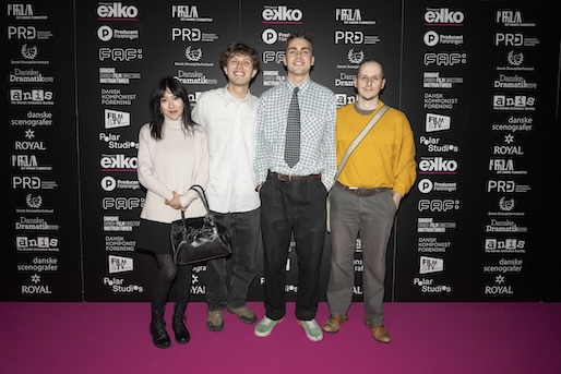 Vennedramaet En anden uden mig vandt som eneste film to priser. Instruktør Emilie Fabricius Hacke (i midten) vandt prisen for bedste fiktion og Nora Øland (yderst til venstre) prisen for bedste lyddesign. Med sig havde de skuespilleren Clara Dessau (nummer to fra venstre), Solvej Sonne Horn og produceren Valdemar Guldbrandsen.