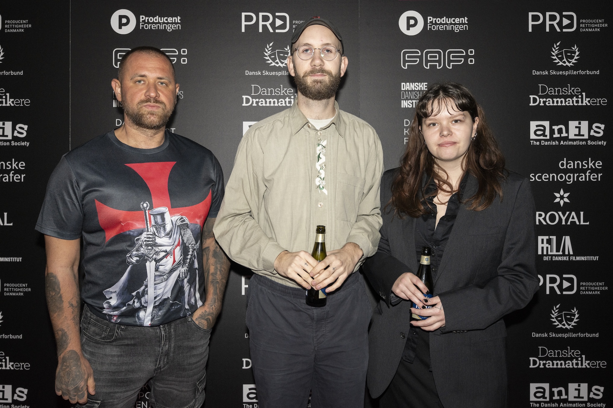 For andet år i træk var Thomas Elley (i midten) nomineret til prisen for bedste dokumentar, denne gang med Europa Endlos om den bulgarske lastbilchauffør Roman Penev. Til højre ses komponisten og lyddesigneren Nora Øland, der har arbejdet på flere af årets nominerede film.