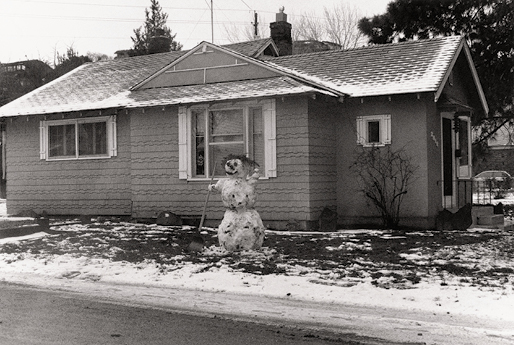 Snowmen er en serie på ti billeder. Jeg tror bare, han har kørt rundt i en bil og lige knipset dem, når han er kommet forbi. Det er godt tænkt, fordi han fanger snemandens flygtige natur. Andre teknisk dygtige fotografer kunne nok have fået samme idé, men så havde de sikkert skabt balance i det gyldne snit og tænkt i solnedgange og den slags.
