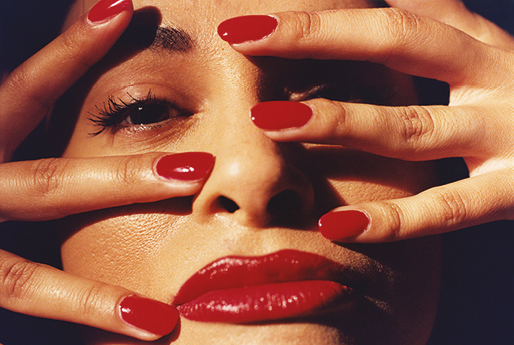 Det her billede er et af hans mere klassiske. Helmut Newton kunne måske have lavet noget i samme dur, men Lynch har sin helt egen stil og måde at frame et billede: de røde negle, de store læber og de store øjne.