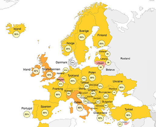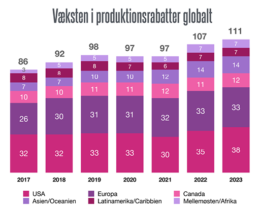 Globalt er antallet af lande med produktionsrabatter siden 2017 vokset med 25, så der i dag er 111. I Europa er der 33 lande med produktionsrabatter, hvor der er kommet syv nye lande til siden 2017.