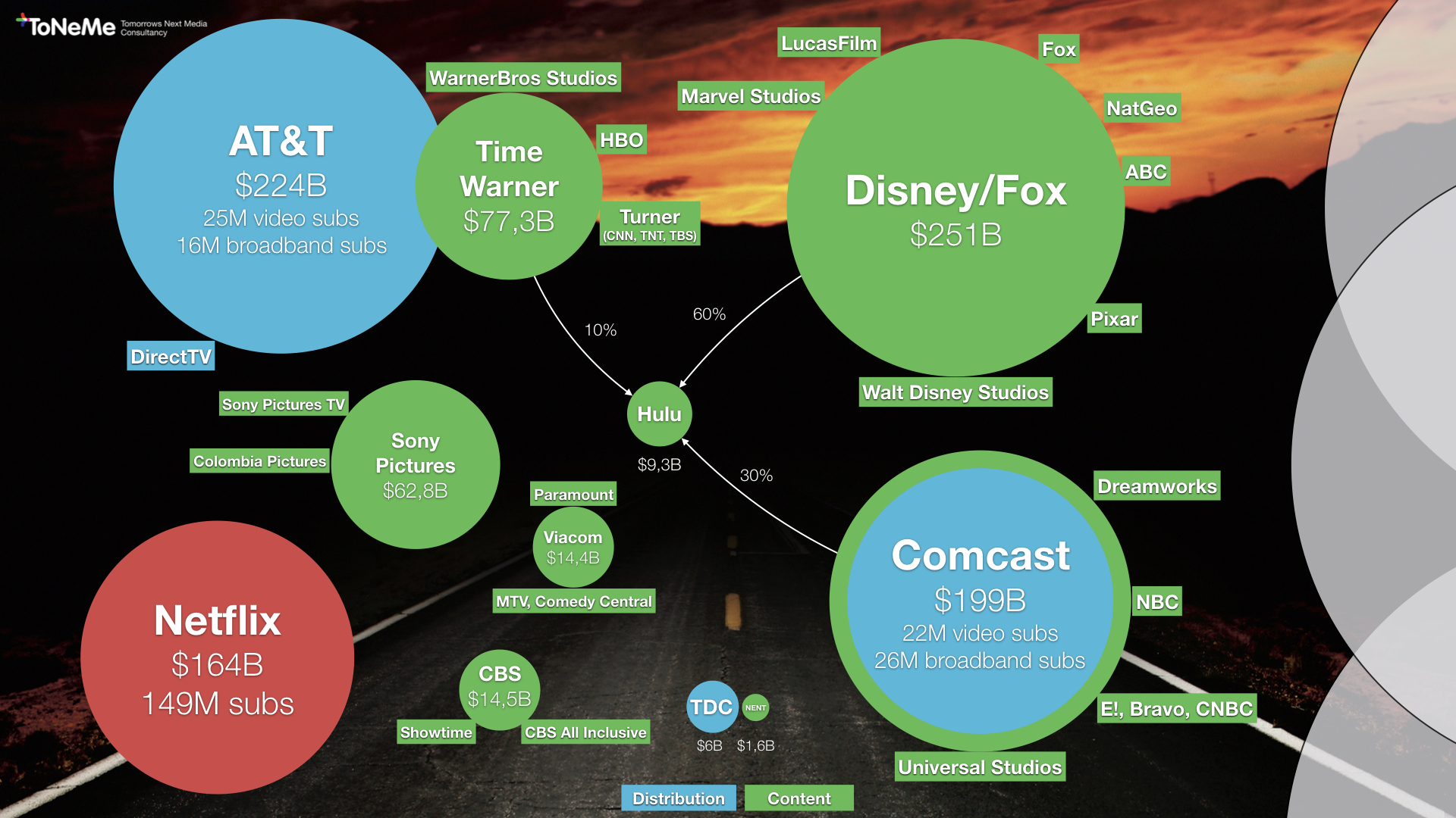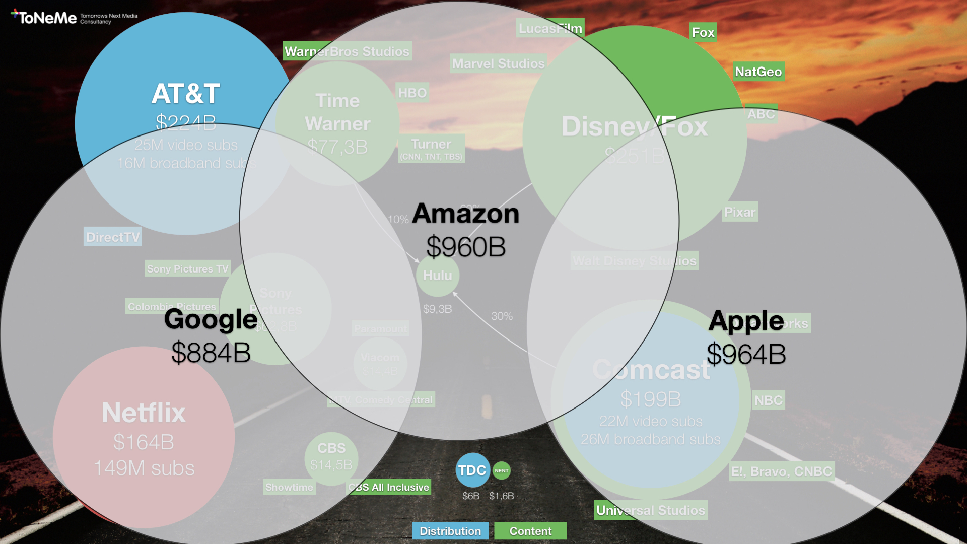 Alle disse selskaber er absurd gigantiske, og de ejer tilsammen tonsvis af medieselskaber, der er i fuld gang med at definere den næste fase af global streaming.