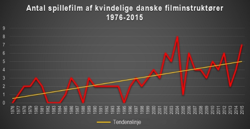 Mændene har i perioden stået for 504 spillefilm, kvinderne for 100. Kvinder har gennemsnitligt stået bag fem film årligt i de første tretten år af dette årtusind, mod gennemsnitligt halvanden film årligt i de sidste 24 år af det forrige.