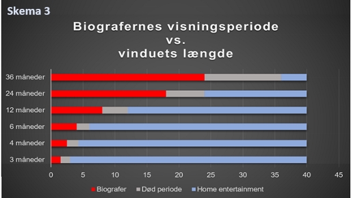 SVAR: ”Ja, og det er alene sket, fordi biograferne eksklusivitet bliver kortere og kortere. Biografernes (høje) indtægter på de små film bliver erstattet af (lave) indtægter i home entertainment-sektoren. Der er således ingen økonomisk fordel ved hurtig udsendelse af film i home entertainment-sektoren. Og økonomiske fordele er forudsætningen for, at der fortsat kan produceres gode film.