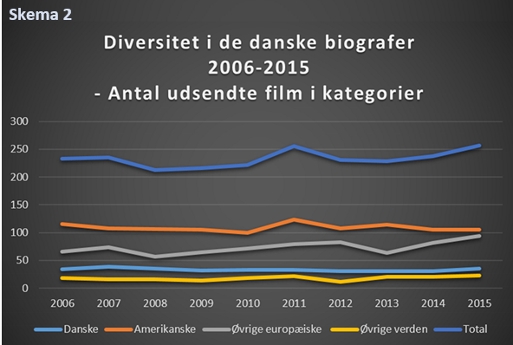 SVAR: Nej, tendensen går i den stik modsatte retning. Diversiteten i biograferne bliver øget år for år. Der er både rekord i det totale antal film, europæiske film samt film fra den øvrige verden. Antallet af amerikanske film er til gengæld i tilbagegang. Europæisk film er på kurs mod at slå amerikansk film i antal. Det er dybt foruroligende en filmredaktør ikke er bevidst om dette faktum.