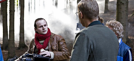 Nedenstående et billede fra filmen, hvor man ser en dybt undrende von Trier, i skikkelse af Jonatan Spang, følge Malmros, som på billedet står med ryggen til.