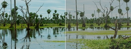De to førende firmaer, som tilbyder teknologien til biograferne, er Dolby med deres Vision og Eclair Color. På billedet angives forskellen på et billede i HDR og et almindeligt billede i biograferne.